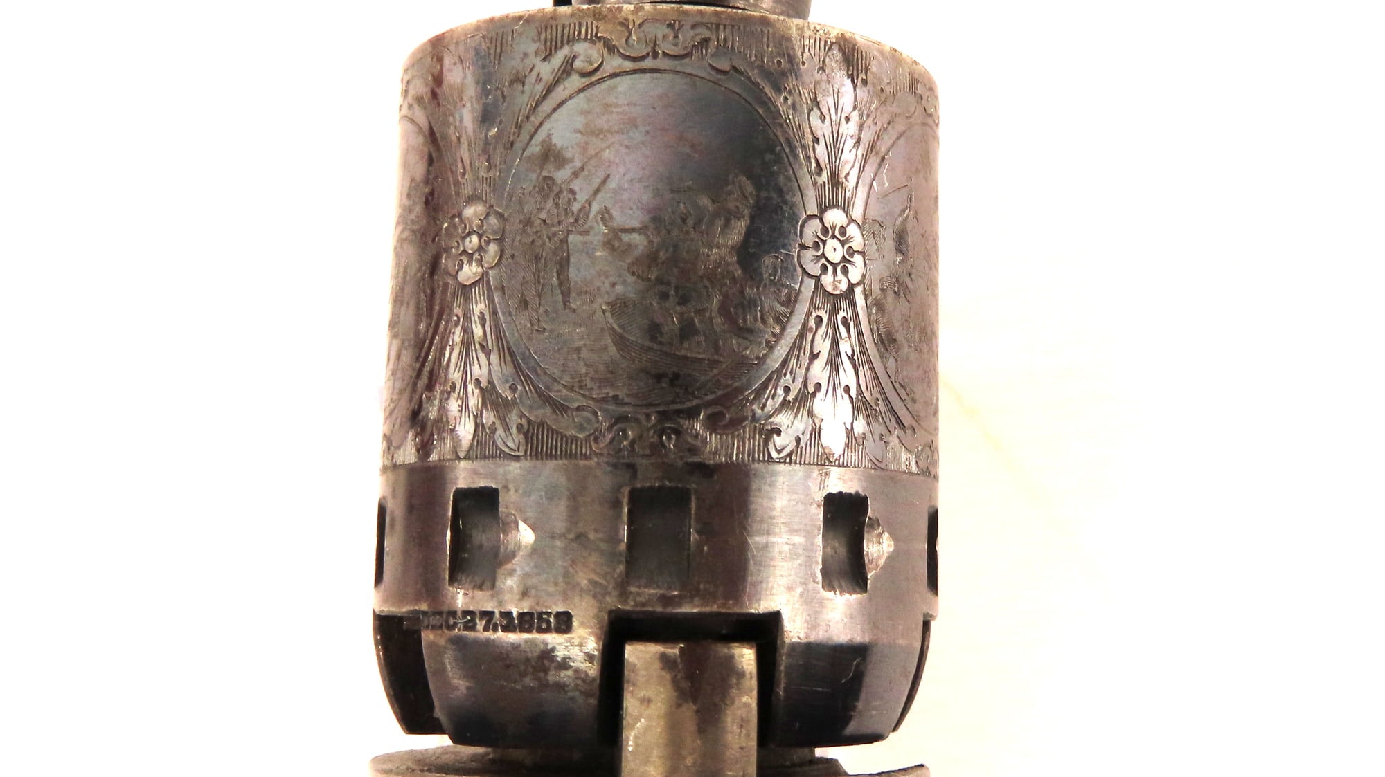 The Manhattan Firearms Company of Newark, New Jersey, was formed in 1856 by a group of businessmen to take advantage of Colt's revolver patents due to expire in 1857. The founders hired Thomas Bacon to become the Superintendent of Manufacturing. The company first began in Norwich, Connecticut and in 1859 moved to Newark, New Jersey The firm produced very good quality copies of Colt's .31 and .36 caliber revolvers and quickly became a major handgun manufactory. During their 17-year existence the company produced some 175,000 firearms. Manhattan didn't aggressively pursue government contracts choosing to target the civilian market that was being somewhat ignored by the principal gunmakers that were concentrating on securing army contracts. Their Navy pistols were made between 1858 and 1868 totalling about 78,000 guns. It was offered in 5-shot or 6-shot with barrel lengths of 4, 5, or 6-inch lengths. The finish was blued except for frame, trigger, and hammer which were case hardened. The brass grip straps were silver plated and the one piece grips were varnished walnut. These options made the Manhattan appealing to many Union officers.