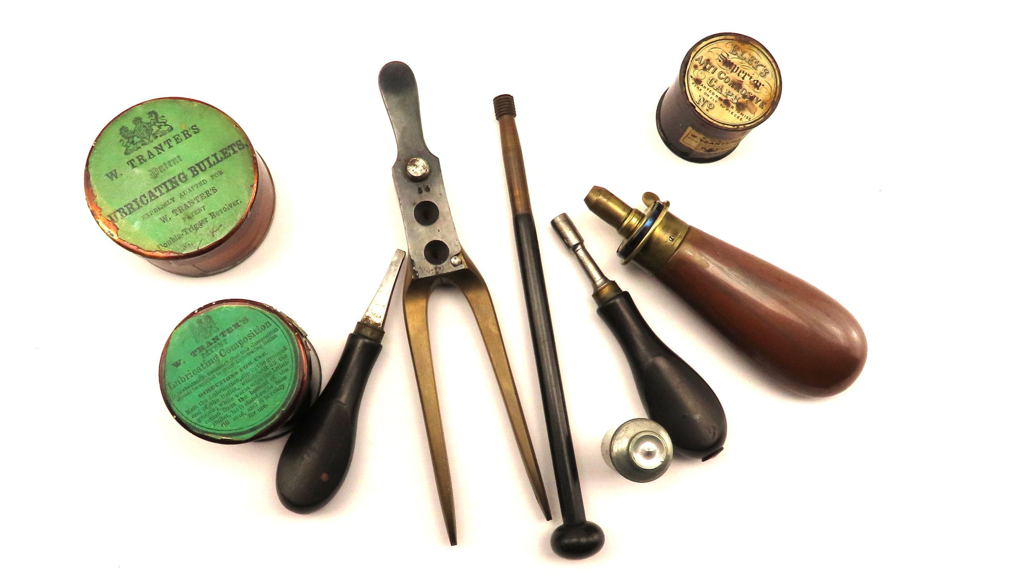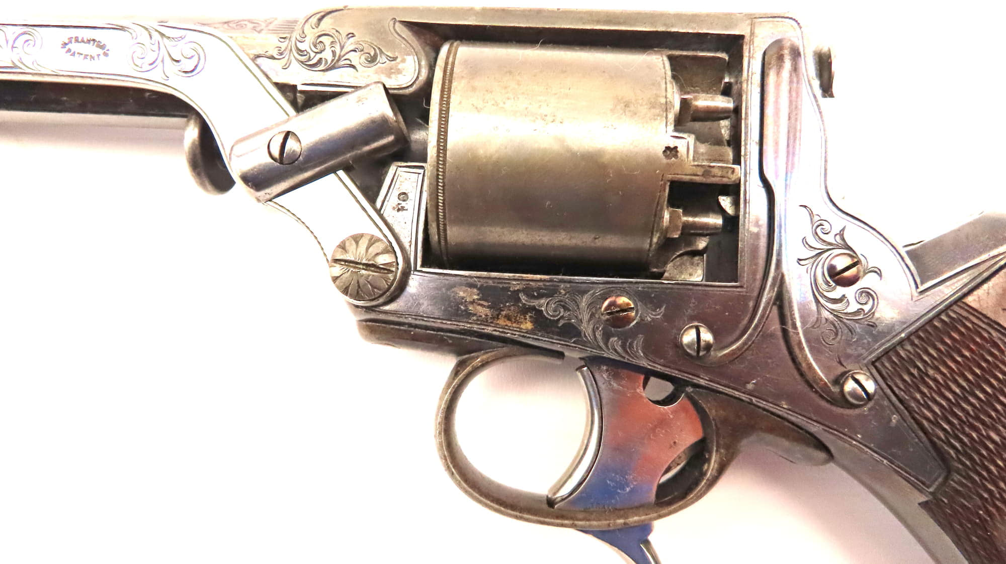 William Tranter traded from 13 St. Mary's Row Birmingham from 1849 to 1875, and between 1853 and 1865 was granted six British patents relating to revolvers and their accessories. He was licensed by Deane, Adams & Deane to make complete Adams' self-cocking revolvers and to use patented frame for his own revolvers.